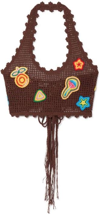 Casablanca Paris Women's Motif Crochet Crop Top, By - Brown - Sleeveless Tops