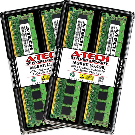 16GB 4X 4GB DDR3 ECC REG. 2Rx8 PC3 1333 Memory For Dell Poweredge T310, R310. A-Tech. Memory RAM . EB49-A145.