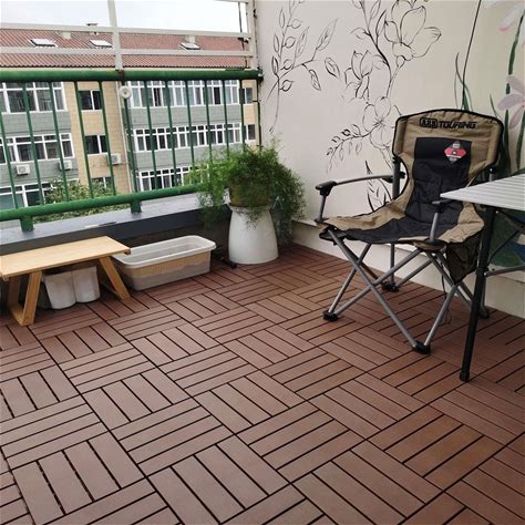 12 X 12 in. Outdoor Patio Stripe Pattern Interlocking Design Acacia Hardwood Flooring, Dark Brown, 10 Pcs