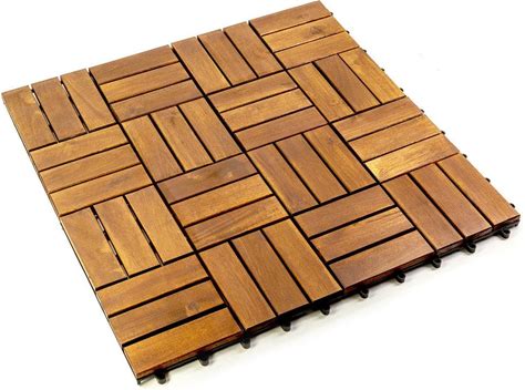 12 in. X 12 in. Acacia Wood Interlocking Flooring Deck Tile Checker Pattern Brown 12 Slats,10-Pieces Covering 10 Sq. Ft.