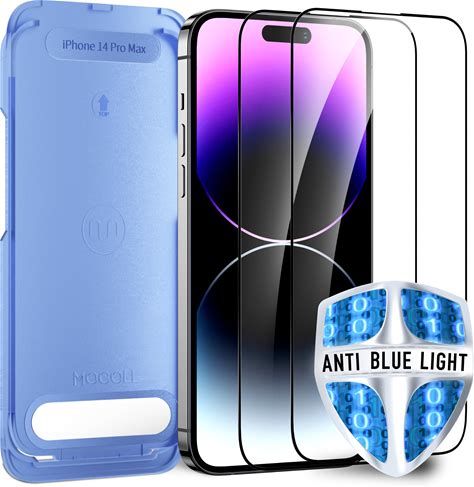 [Auto Alignment Kit] For iPhone 14 Pro Max Screen Protector Blue Light [6.7 Inch] Full Coverage Dynamic Island Compatible, Anti Glare Anti Blue Light