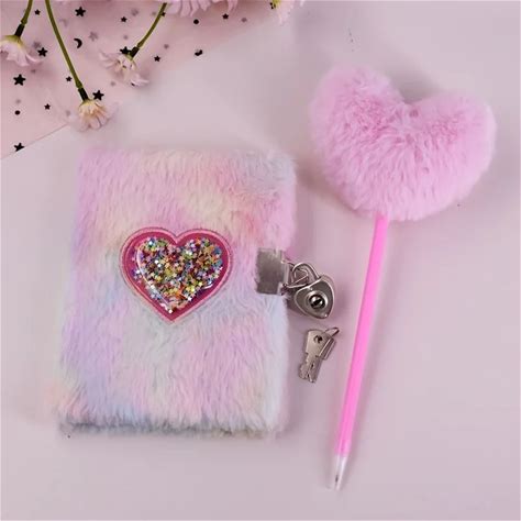 2 Pcs Heart-Shaped Notebook Set, Plush Diary And Plush Heart Pen, Suitable For School, Office,
