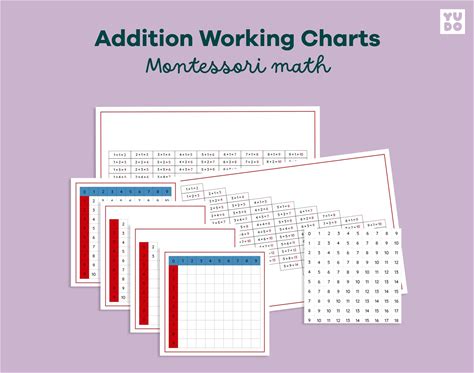 Montessori Addition Working Charts, Math Material Extension Activity, Montessori Activity, Math Operations Addition Practice Printable
