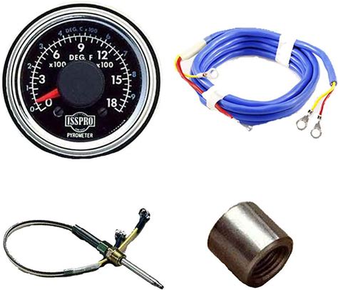 Isspro 2-1/16 Inch Pyrometer Kit 0-1500F With Post Turbo, Black Bezel/Face, Color-Coded Dial, Red Pointer, 6 ft. Wiring
