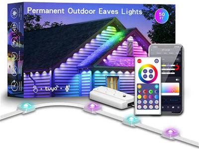 Permanent Light 16.5-150ft Smart RGBIC Outdoor Eaves Light, Eternity Light With Tuya Wifi APP Control, IP65 Waterproof, DIY Programming, Alexa Comp...