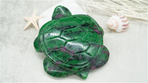 Natural Ruby Zoisite Crystal Turtle Figurine Healing Protection Gemstone Home Decor Gift UV Reactive Crystal Carving Green Turtle Decoration