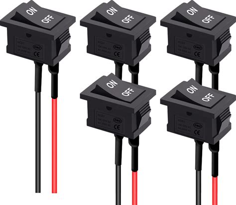 TWTADE 5PCS Latching Rocker Switch ON/Off 2 Pin 2 Position SPST Car Auto Boat Square Rocker Toggle Switch With Pre-Wired AC 10A/125V 6A/250V