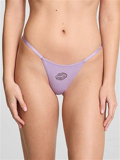 Pink Logo Cotton String Micro Thong Panty, Purple, S - Women's Panties - PINK