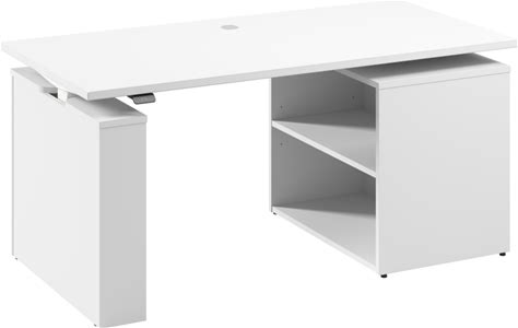Stratus Electric Height Adjustable Standing Desk With Bookcase 59"W X 29"D X 27"H In Platinum Gray